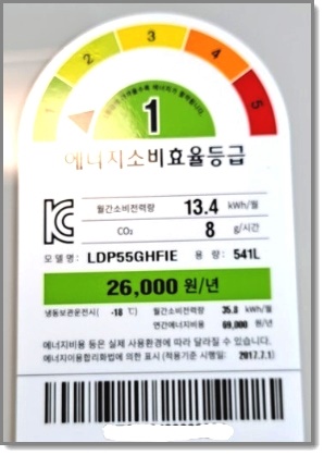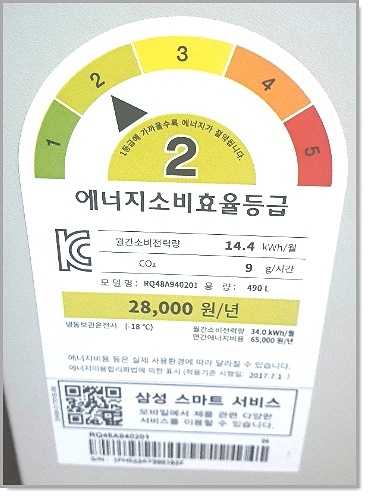 해당 라벨에는 각 가전제품의 연간 예상 전기요금과 이산화탄소 배출량 정보가 담겨있는데요